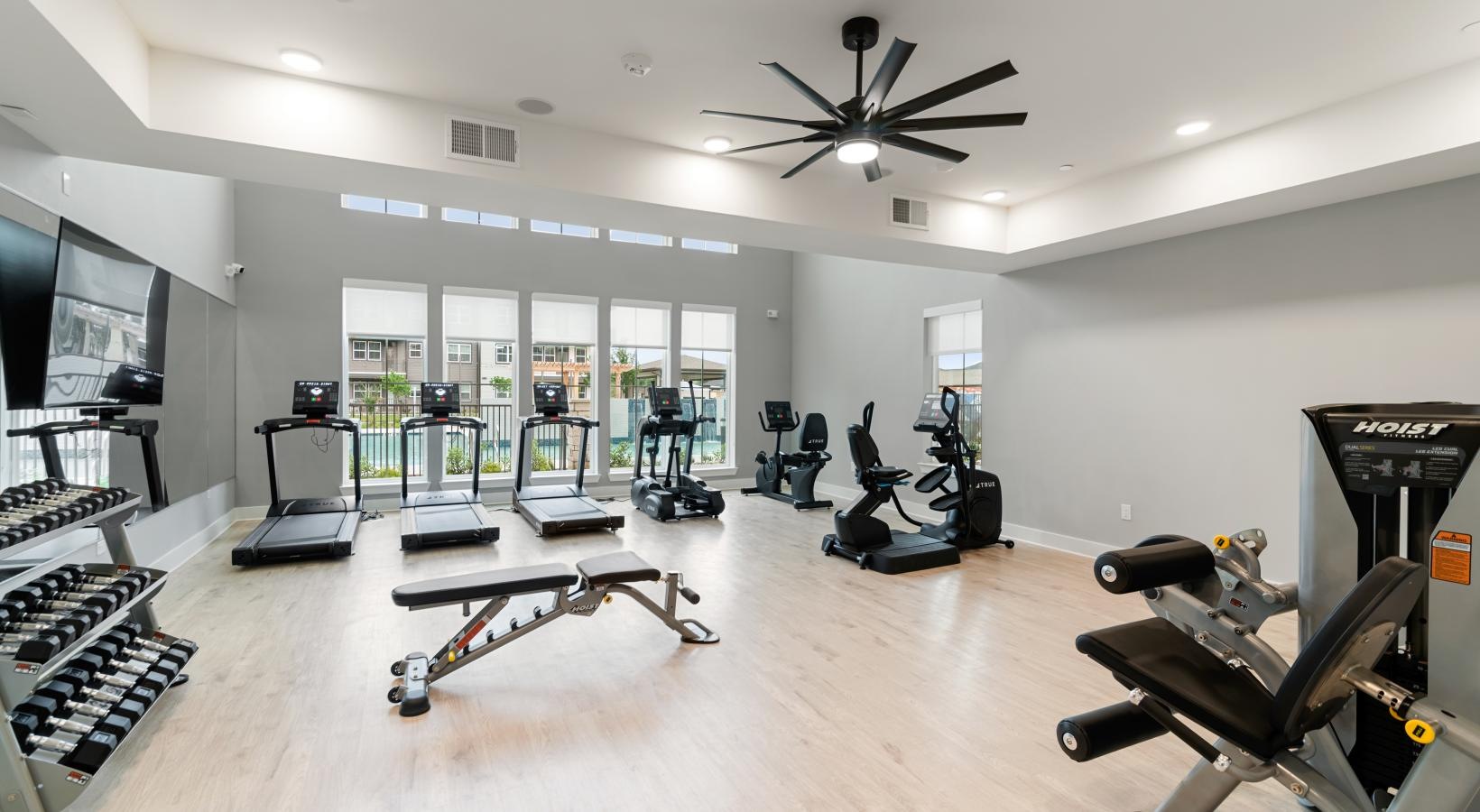 • a gym with exercise equipment