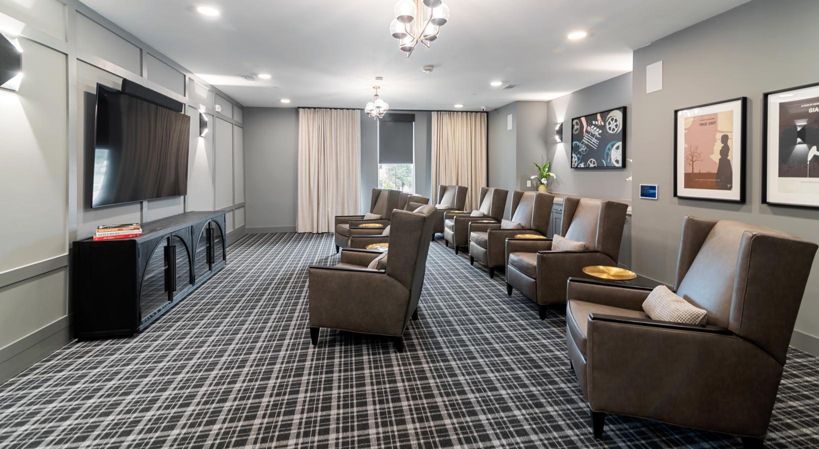 • a clubroom movie theater with a tv and chairs