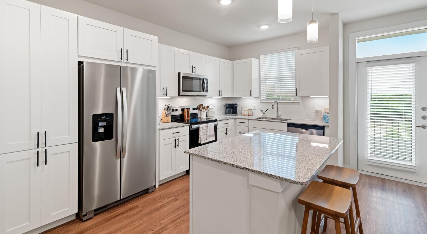 • a kitchen with white cabinets